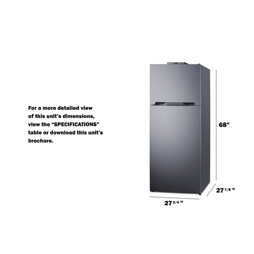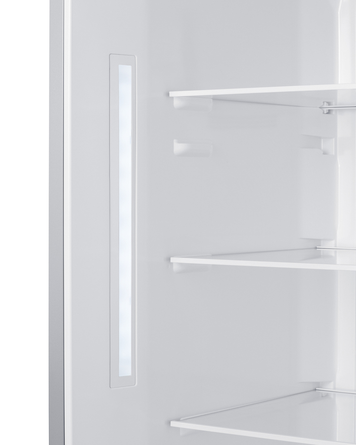 Summit's selection of break room refrigeration features a variety of units for convenient and reliable storage in hospitals, clinics, and other facilities. The ENERGY STAR certified BKRF15SS is a top-mount refrigerator-freezer that offers a spacious 14.3 cu.ft. of storage capacity in a popular 28" fit. The stainless steel doors and cabinet offer a high-end look for contemporary spaces, with a sealed back design to ensure easier cleanup. The doors are user-reversible to best suit your space. Located at the top of the BKRF15SS are two NIST-calibrated thermometers to provide a temperature readout of the current and high/low temperatures in each section to the nearest tenth of a degree. Temperature can be viewed in Celsius or Fahrenheit for added convenience. Each thermometer includes an audible high/low alarm function to warn users if the refrigerator or freezer section exceeds the specified temperature range. Inside, the BKRF15SS utilizes frost-free defrost to minimize user-maintenance. The freezer compartment includes a removable glass shelf and two fixed door shelves. The SuperFreeze setting is ideal for freezing newly loaded foods quickly. The refrigerator section is fully featured for fresh foods with interior lighting, spill-proof adjustable glass shelves, two humidity-controlled clear crispers, and removable door racks that accommodate gallon-sized containers. With its ENERGY STAR certified performance and convenient features, the European-made BKRF15SS is the ideal choice for break rooms and facilities looking for an energy-efficient refrigerator-freezer. Additional colors and sizes are available.