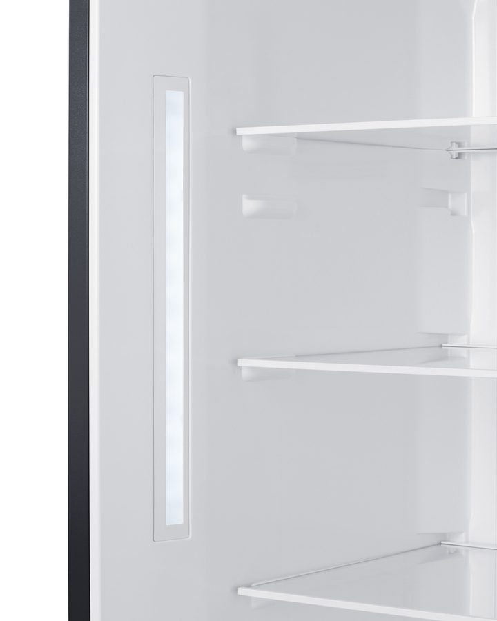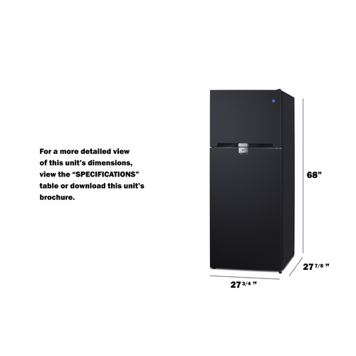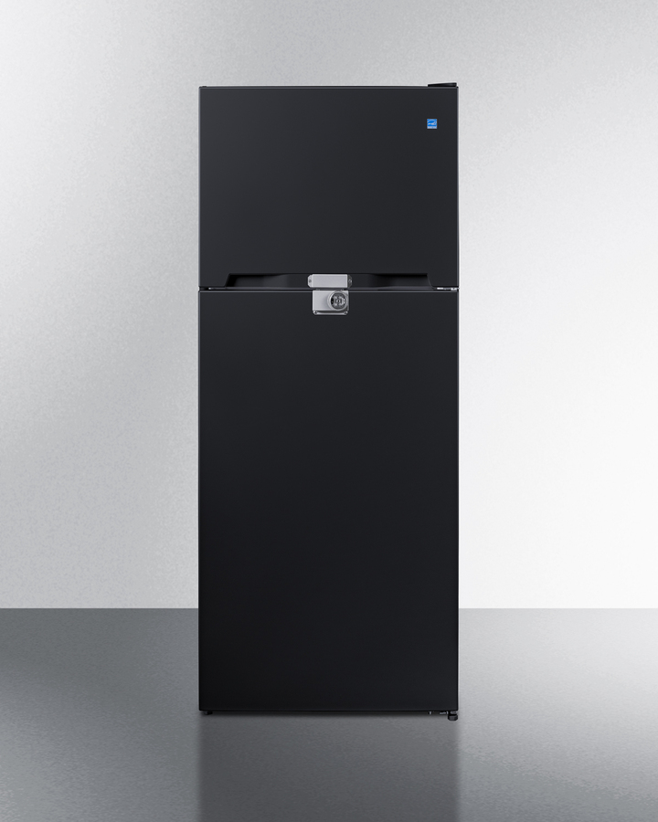 Summit's selection of top-mount freezer refrigerators offers true convenience for every kitchen, including break rooms and other general-purpose facilities. The ENERGY STAR certified CTR152BLLF2 is a top-mount refrigerator-freezer that offers a spacious 14.3 cu.ft. of storage capacity in a popular 28" fit. The modern black doors and cabinet offer a stylish look for contemporary kitchens, with a sealed back design to ensure easier cleanup. The doors are user-reversible to best suit your space. We include a factory-installed lock that secures both the refrigerator and freezer sections with a single dial combination. A key override is included in case of lost codes. Inside, the CTR152BLLF2 utilizes frost-free defrost to minimize user-maintenance. he refrigerator section is fully featured for fresh foods with interior lighting, spill-proof adjustable glass shelves, two humidity-controlled clear crispers, and removable door racks that accommodate gallon-sized containers. The freezer compartment includes a removable glass shelf and two fixed door shelves. The SuperFreeze setting is ideal for freezing newly loaded foods quickly. With its ENERGY STAR certified performance and convenient features, the European-made CTR152BLLF2 is an ideal choice for break rooms and facilities looking for an energy-efficient refrigerator-freezer. Explore all of our break room and general-purpose refrigerator-freezers at summitappliance.com.