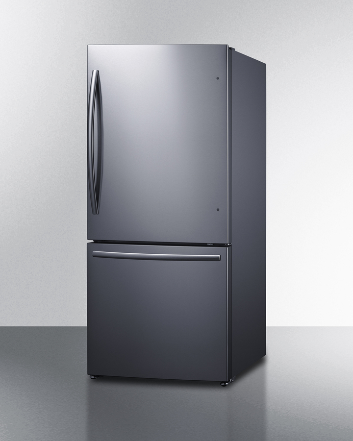 Frost-free ENERGY STAR certified bottom freezer refrigerator with icemaker in stainless steel and counter depth fit