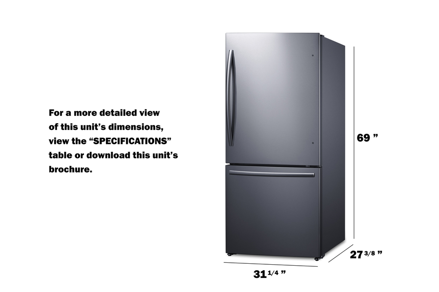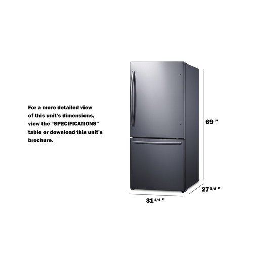 31" Wide Bottom Freezer Refrigerator with Icemaker