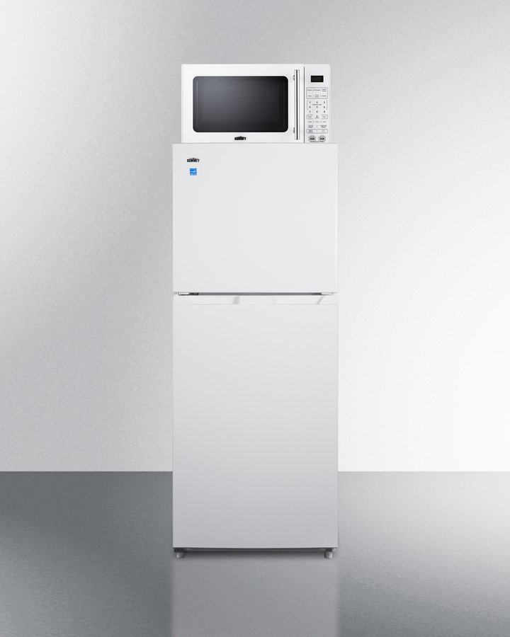 Summit's innovative MRF series offers combination refrigerator-microwaves with one-plug operation, ideal for hotels and other settings looking to maximize user convenience. Model MRF1088WALHD combines a fully featured compact microwave with our frost-free 10.1 cu.ft. FF1088W refrigerator-freezer. The FF1088WLHD is ENERGY STAR certified, with a classic white exterior. The microwave includes a built-in allocator, allowing you to plug the fridge directly into the microwave. The allocator will temporarily disable the power of the refrigerator while the microwave is in use, resuming after the cooking cycle is complete in order to protect against power surges. The SM904WA microwave comes in a clean white finish with an easy-grab handle in brushed stainless steel. Two USB ports are included to charge mobile devices. The microwave has a door window and digital touchpad control panel with one-touch settings for common meals, including frozen food, potatoes, pizza, and popcorn. We include two brackets that let you set the microwave on top of the refrigerator and gently secure with included adhesive strips. The MRF1088WA ships on one pallet in three boxes (refrigerator-freezer FF1088WLHD, microwave SM904W, and our MRFKit bracket set). If you prefer to have the unit fully assembled before shipping, add option "MRFAssembly" upon order (note: this will incur an additional charge and added lead time). Alternate combinations can be created by ordering your choice of a Summit refrigerator, the SM904W microwave, and our MRFKit. For more information, contact our product specialists at 718-893-3900 ext. 507.