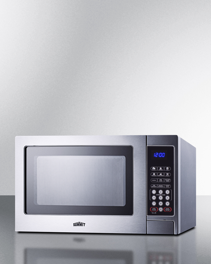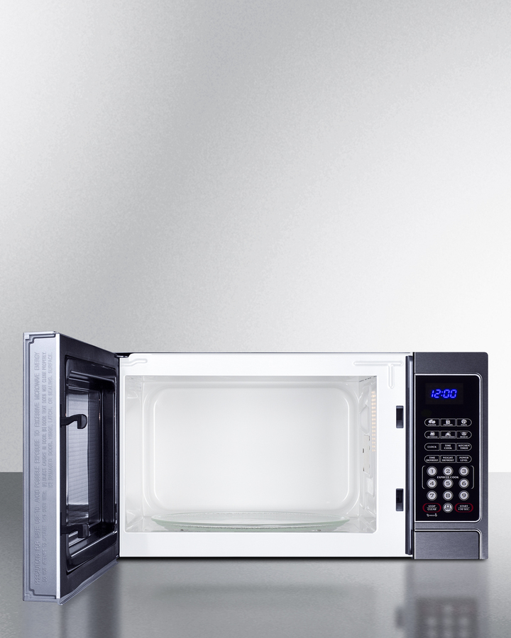 SUMMIT SCM853 brings modern style to the classic microwave oven. This 900W unit comes with a brushed stainless steel exterior ideal for any setting. The digital controls offer a variety of cooking functions, with options for popcorn, reheating, defrosting, melting, and softening butter. Multiple power levels allow you to program two cooking steps and a child lock ensures added safety. This model includes a glass turntable and a push-to-open button. With an attractive design and full cooking convenience, the SCM853 is the ideal compact microwave for small kitchens.